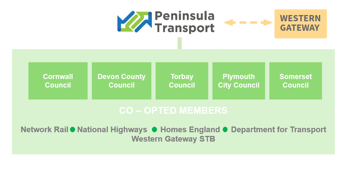 Peninsula Transport was established in 2018 by Cornwall, Devon, Plymouth, Somerset and Torbay Councils to speak with one voice about the transport and infrastructure needs of the region in order to boost economic growth.